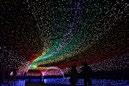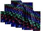 structures play with the effects of colored shadows cast by limitedspectrum lights, with patterned and overlapping effects.