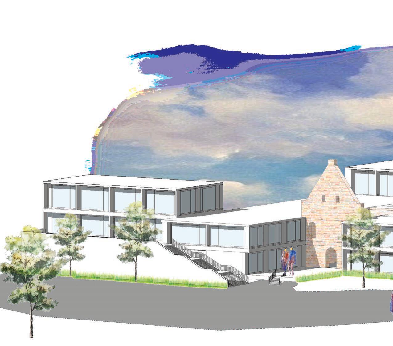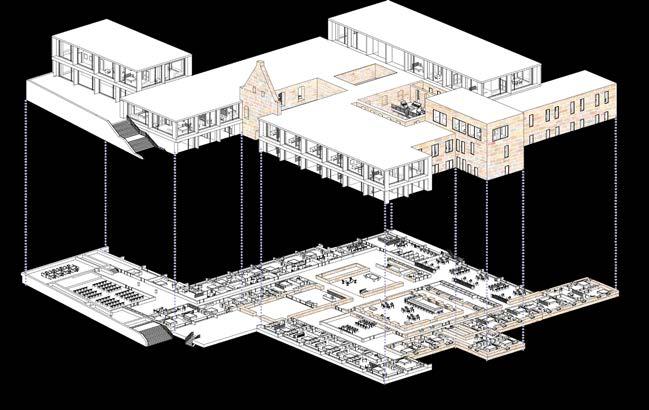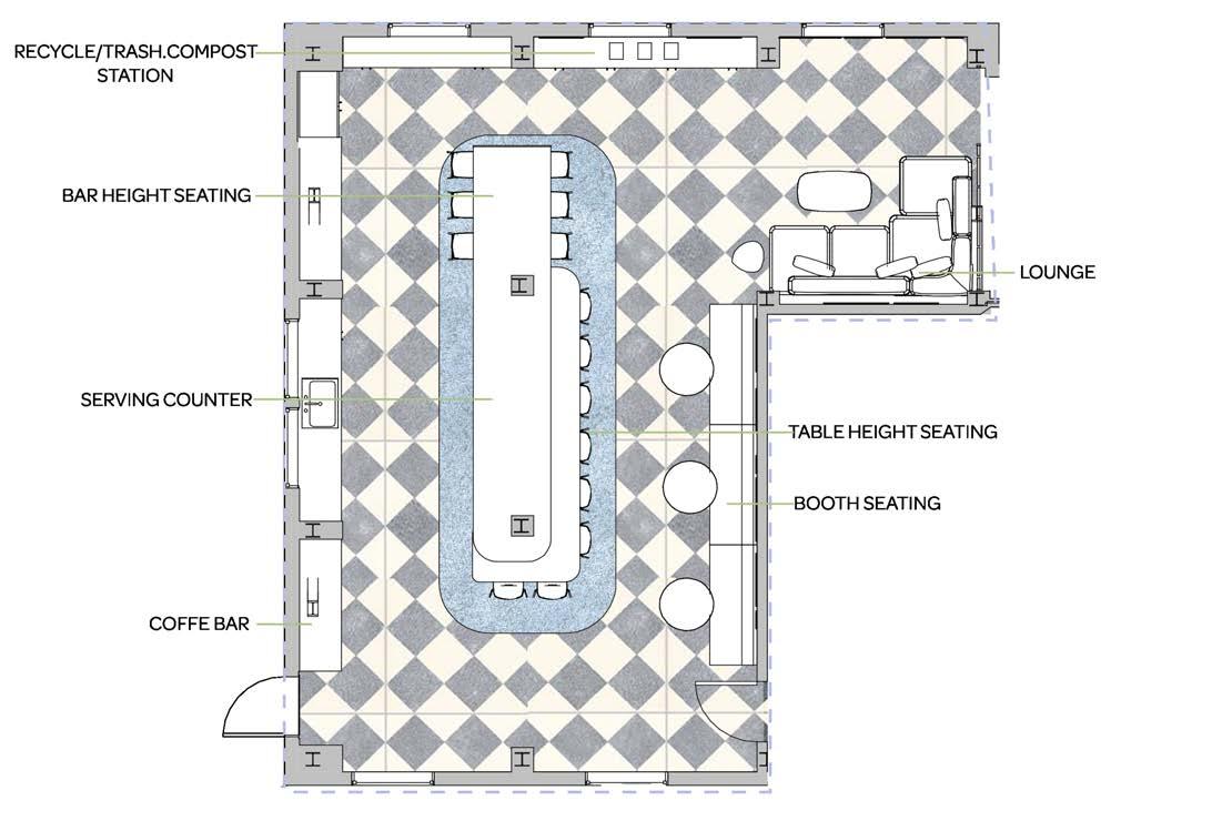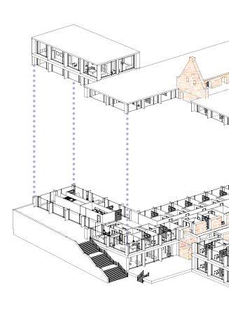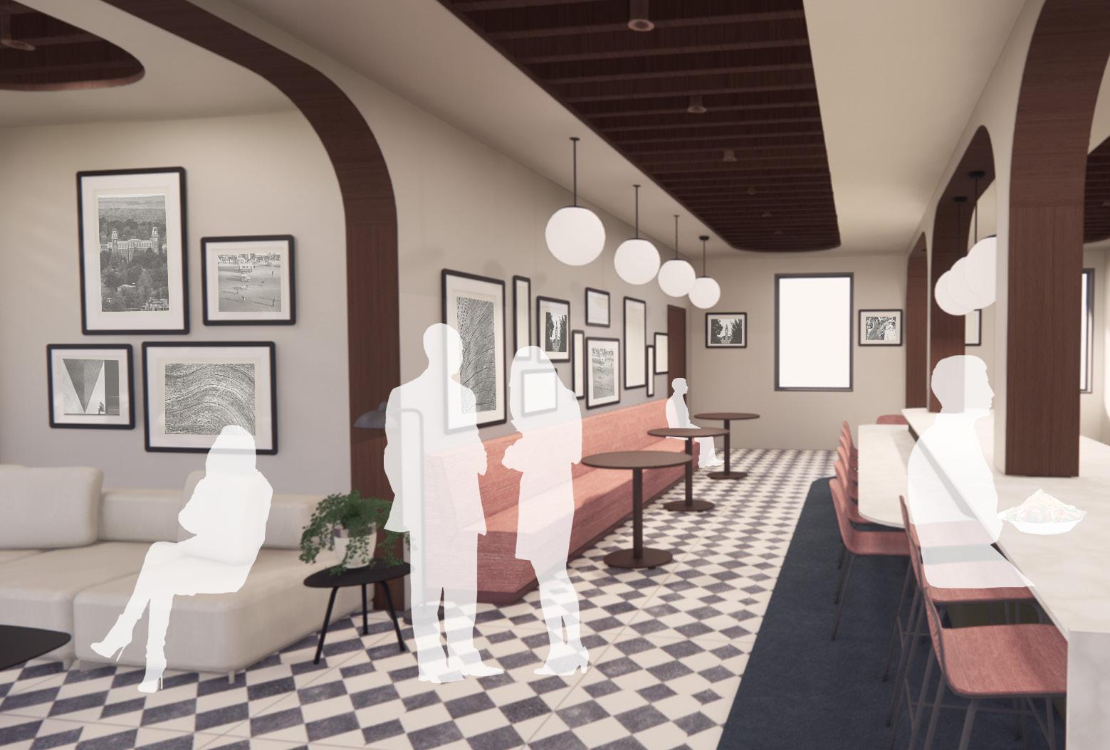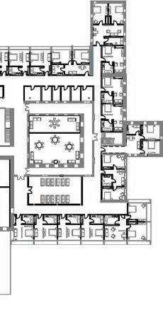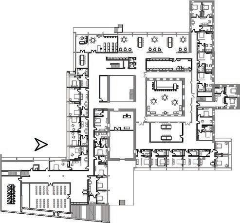 THE PROGRAM: dining hall, a public bar/cafe, library, and double and single occupancy rooms.