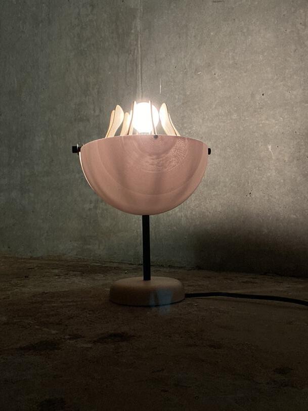 I pulled inspiration from memories that made me feel warm. This specific lamp derived from a trip to the Dallas Botanical Gardens I took with my family when I was very young. The shape and form is inspired by a tulip blooming in the spring- opening its arms to welcome in the new season.