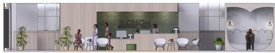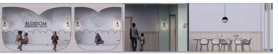 The Blossom Behavioral Health and Wellness Clinic will use nature and evidence based design inspired by the Magnolia tree. Like us, magnolia trees come in many shapes, sizes, and colors. Blossom behavioral health is based off 3 of the most popular types of magnolias in the US. The Magnolia is known for its resilience, stature, and large white flowers that bloom every spring. Some design solutions used include incorporating greenery, natural materials, and using color for emphasis and identity. Nature is both mentally and physically healing and is a symbol of life and growth Plants will be spread throughout the space to serve as mental and physical therapeutic value.