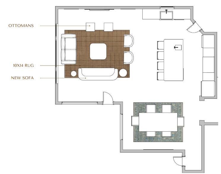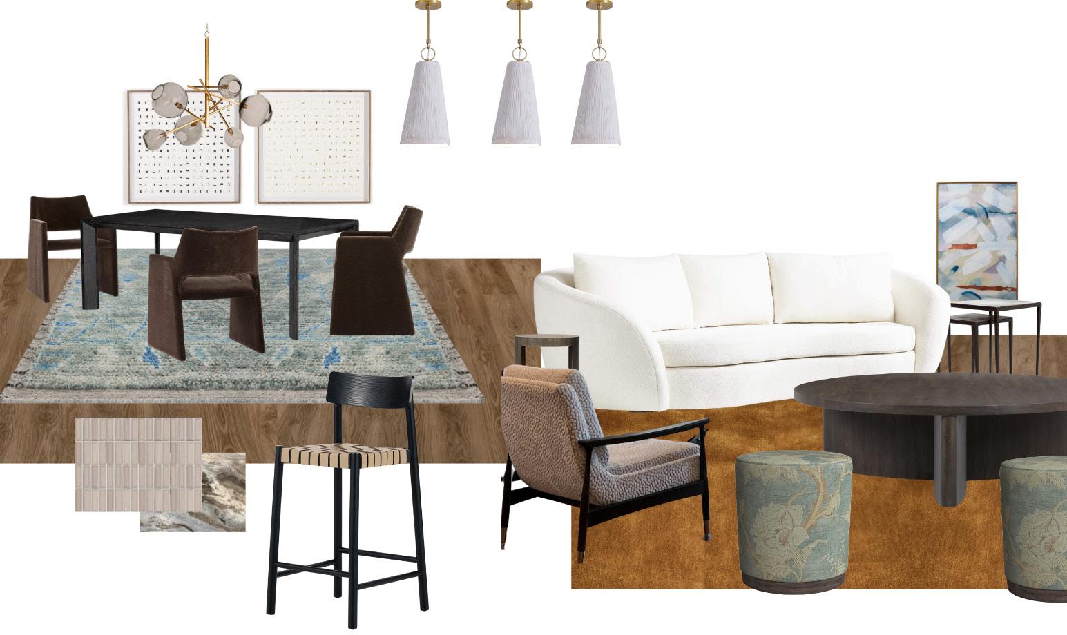 - Update furnishing and lighting in the primary living and dining spaces with a comfortable layout at the appropriate scale