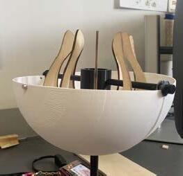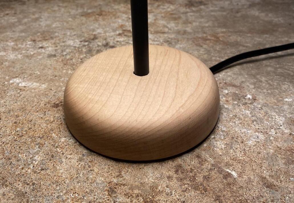 THE MATERIALS: The Florescence lamp is constructed out of 3 main materials. The lampshade and central hub were 3D printed using models from Rhino. The base is made out of hard maple that was spun and sculpted on a lathe machine. And the inner wooden pieces are laser cut bass wood. The 27 chair was constructed out of two wood types, hard maple and walnut wood. Held togther by lap joints, wooden dowels, spline joints, as well as a woven seat.