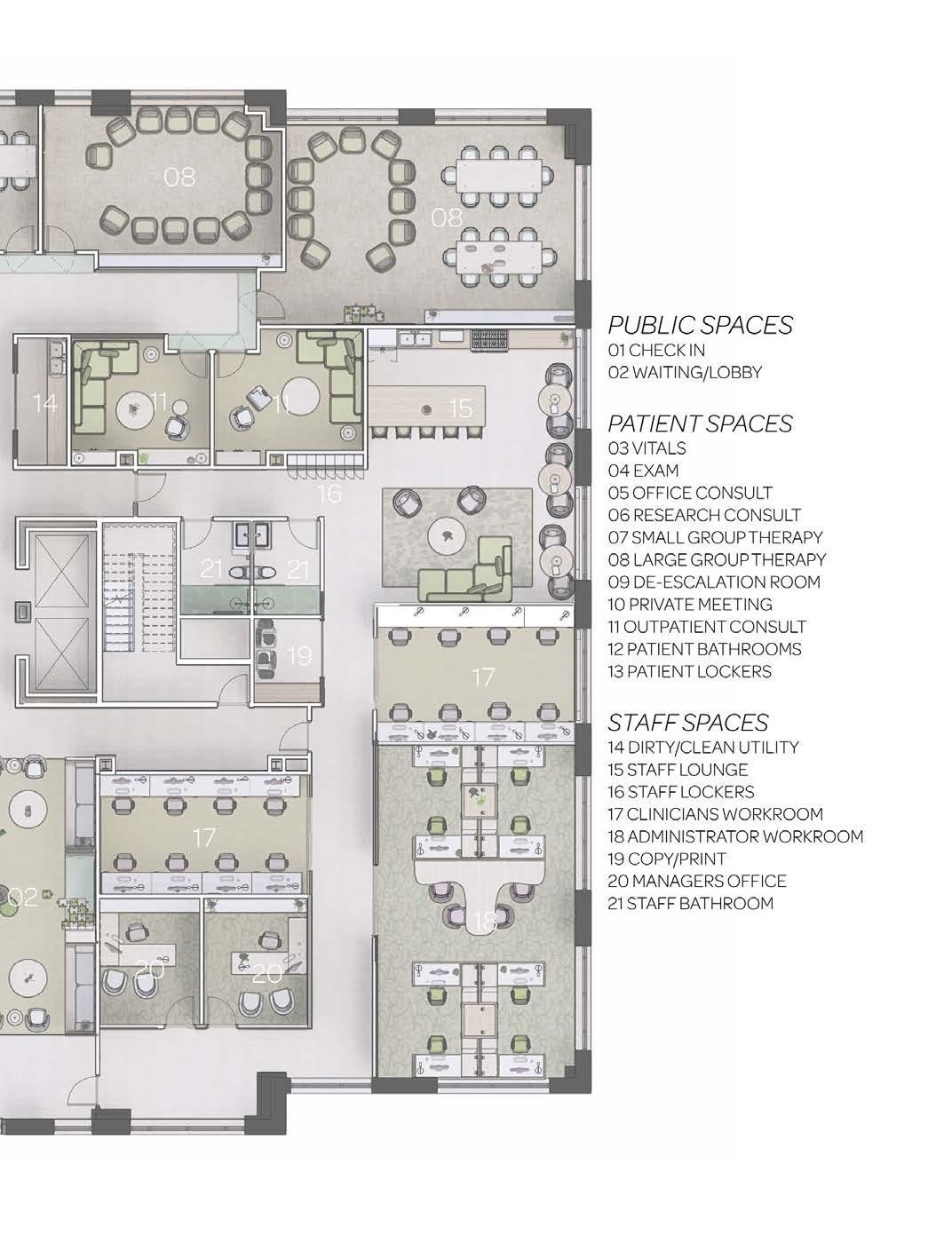 104WC473SFPATIENTS 138STAFFWC173SFSTAFF 114COPY285SFSTAFF 106DEESCALATIONROOM107SFPATIENTS 125EXAM125SFNEWPATIENTS 110MANAGERSOFFICE1139SFSTAFF 120MANAGERSOFFICE2145SFSTAFF 115PRIVATEMEETING164SFSTAFF/FAMILIES 113OFFICECONSULT1171SFNEWPATIENT 133OUTPATIENTCONSULT1184SFOUTPATIENT 117OFFICECONSULT2185SFNEWPATIENT 127OUTPATIENTCONSULT2196SFOUTPATIENT 119SMALLGROUPTHERAPY2242SFOUTPATIENT 108SMALLGROUPTHERAPY4246SFOUTPATIENT 109SMALLGROUPTHERAPY3249SFOUTPATIENT 118SMALLGROUPTHERAPY1259SFOUTPATIENT 123CLINICIANSWORKROOM2275SFSTAFF 111RESEARCHCONSULT2276SFNEWPATIENT 116RESEARCHCONSULT1280SFNEWPATIENT