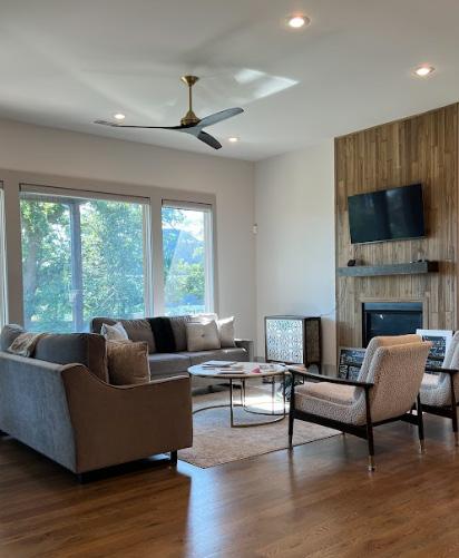 The DESIGN SOLUTIONS included the use of a natural color palette, clean lines, greenery, and celebration of the existing brick walls. As well as large bathrooms, accessible storage, and queen-sized beds provided in each occupants room. This design allows the residents to continue to live adventurous, independent, and fulfilling lives.