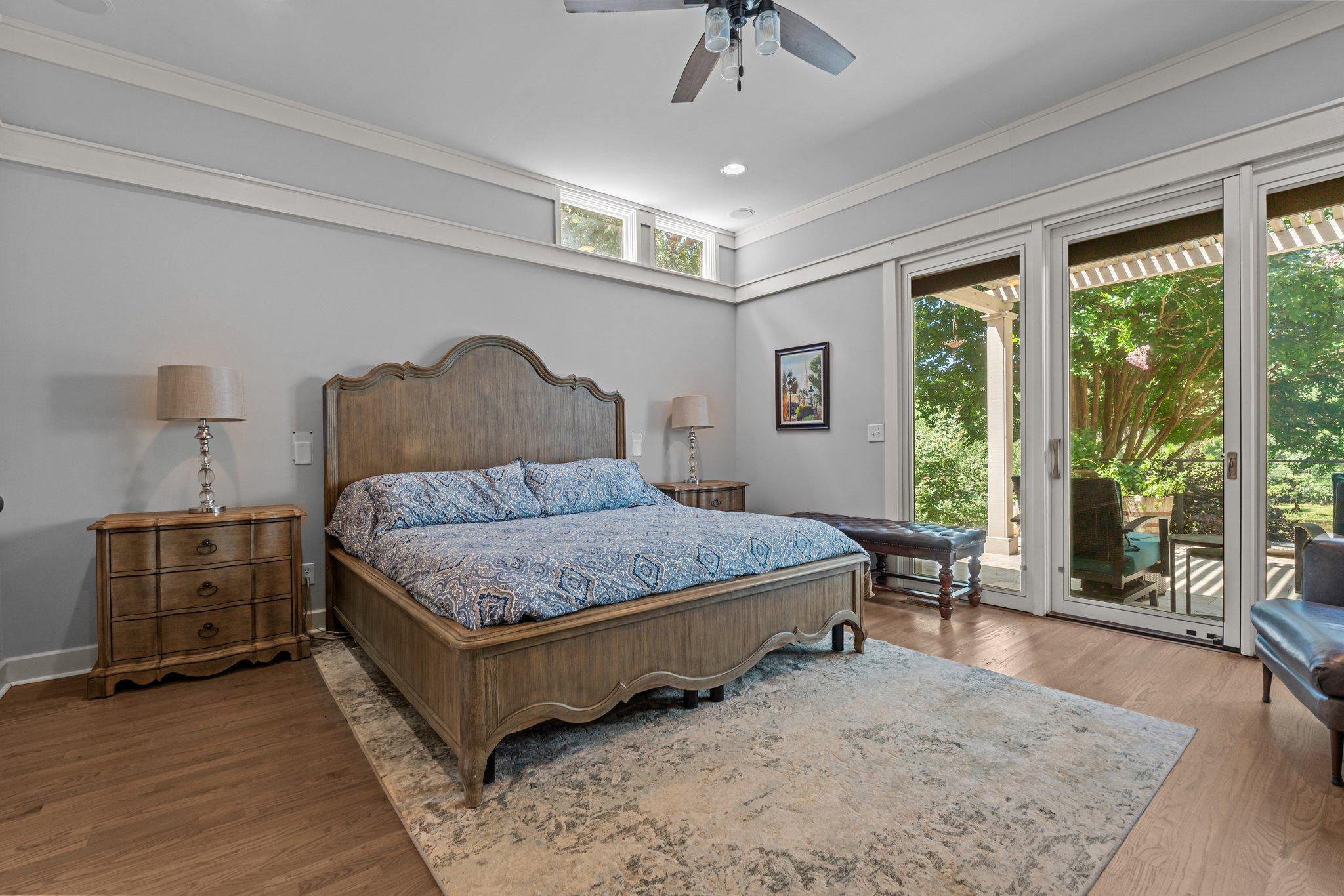 • MasterBedroomWithCeilingFan,RefinishedWoodFloors,NewerFrenchDoor(2020) To BackPatio