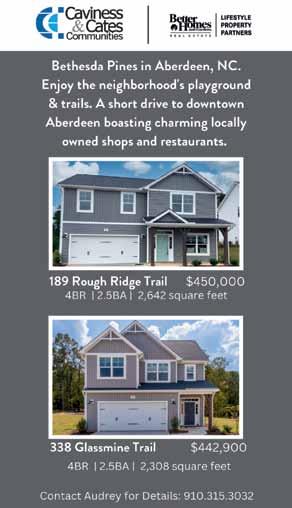 equestrian heritage. November also honors our Veterans, and we’ll highlight the Veteran Golf Association over Veterans Weekend, featuring everything from golf tournaments, golf cart races, and BBQ cookouts. This season is all about giving, so I’ll shine a spotlight on some of my favorite charitable organizations and their incredible missions—proving that Christmas miracles are indeed possible! Lastly, I’ll provide an update on median home prices in Moore County and how we stack up against state and national averages. Don’t forget to check out the holiday calendar of events for a full list of fun and holiday magic!
