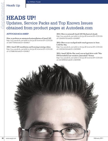 2011: How to uninstall AutoCAD Mechanical cleanly http://usa.autodesk.com/adsk/servlet/ps/dl/item?siteID=123112& id=15649507&linkID=9240897 2011: How to use trackpad multi-touch gestures in AutoCAD for Mac http://usa.autodesk.com/adsk/servlet/ps/dl/item?siteID=123112& id=15833633&linkID=15839490 2011: AutoCAD for Mac won’t run on hard drive with “Mac OS Extended (Case-sensitive, Journaled)” format http://usa.autodesk.com/adsk/servlet/ps/dl/item?siteID=123112& id=16158903&linkID=15839490