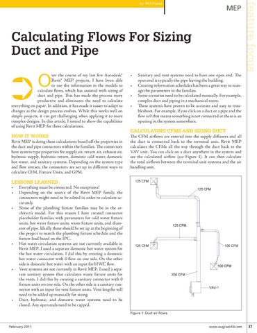 ver the course of my last few Autodesk® Revit® MEP projects, I have been able to use the information in the models to calculate flows, which has assisted with sizing of duct and pipe. This has made the process more productive and eliminates the need to calculate everything on paper. In addition, it has made it easier to adapt to changes as the design process evolves. While this works well on simple projects, it can get challenging when applying it to more complex designs. In this article, I intend to show the capabilities of using Revit MEP for these calculations.
