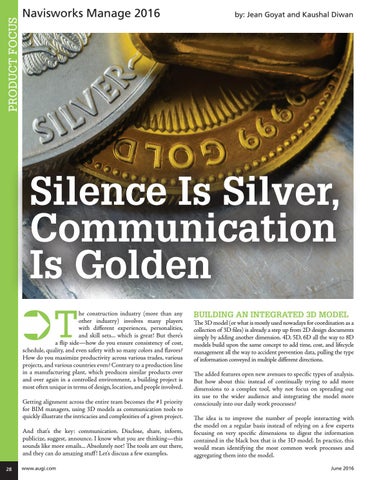 Building an Integrated 3D Model The 3D model (or what is mostly used nowadays for coordination as a collection of 3D files) is already a step up from 2D design documents simply by adding another dimension. 4D, 5D, 6D all the way to 8D models build upon the same concept to add time, cost, and lifecycle management all the way to accident prevention data, pulling the type of information conveyed in multiple different directions. The added features open new avenues to specific types of analysis. But how about this: instead of continually trying to add more dimensions to a complex tool, why not focus on spreading out its use to the wider audience and integrating the model more consciously into our daily work processes? The idea is to improve the number of people interacting with the model on a regular basis instead of relying on a few experts focusing on very specific dimensions to digest the information contained in the black box that is the 3D model. In practice, this would mean identifying the most common work processes and aggregating them into the model. June 2016