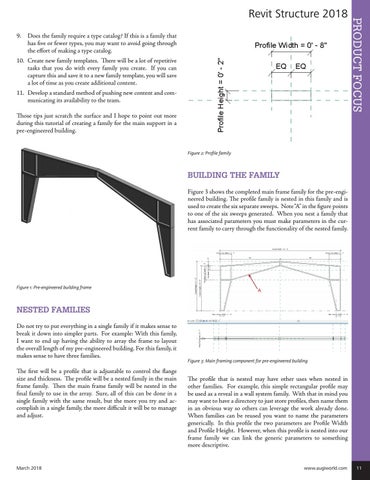BUILDING THE FAMILY Figure 3 shows the completed main frame family for the pre-engineered building. The profile family is nested in this family and is used to create the six separate sweeps. Note “A� in the figure points to one of the six sweeps generated. When you nest a family that has associated parameters you must make parameters in the current family to carry through the functionality of the nested family.