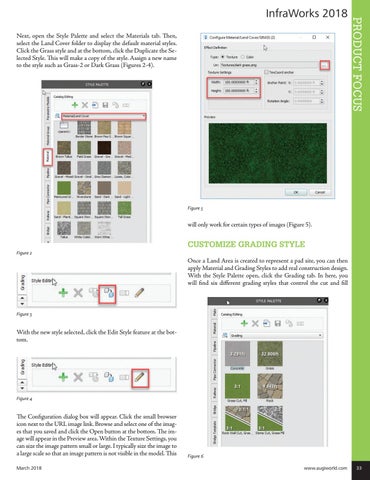 Next, open the Style Palette and select the Materials tab. Then, select the Land Cover folder to display the default material styles. Click the Grass style and at the bottom, click the Duplicate the Selected Style. This will make a copy of the style. Assign a new name to the style such as Grass-2 or Dark Grass (Figures 2-4).