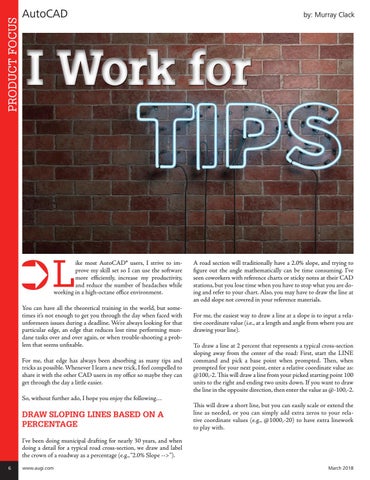 ike most AutoCAD® users, I strive to improve my skill set so I can use the software more efficiently, increase my productivity, and reduce the number of headaches while working in a high-octane office environment.
