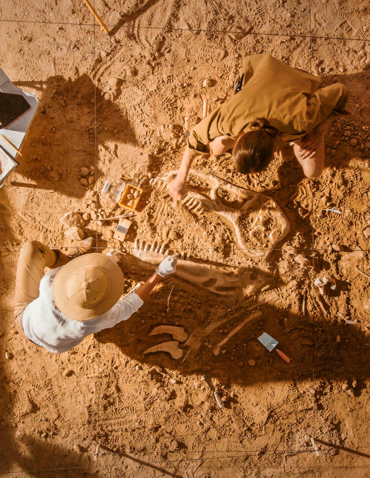 b. When paleontologists are working at a dig site, they might see just a small part of a fossil sticking out of the rock formation or even just an impression above the ground that would lead them to suspect a fossil was contained in the rock at that location.