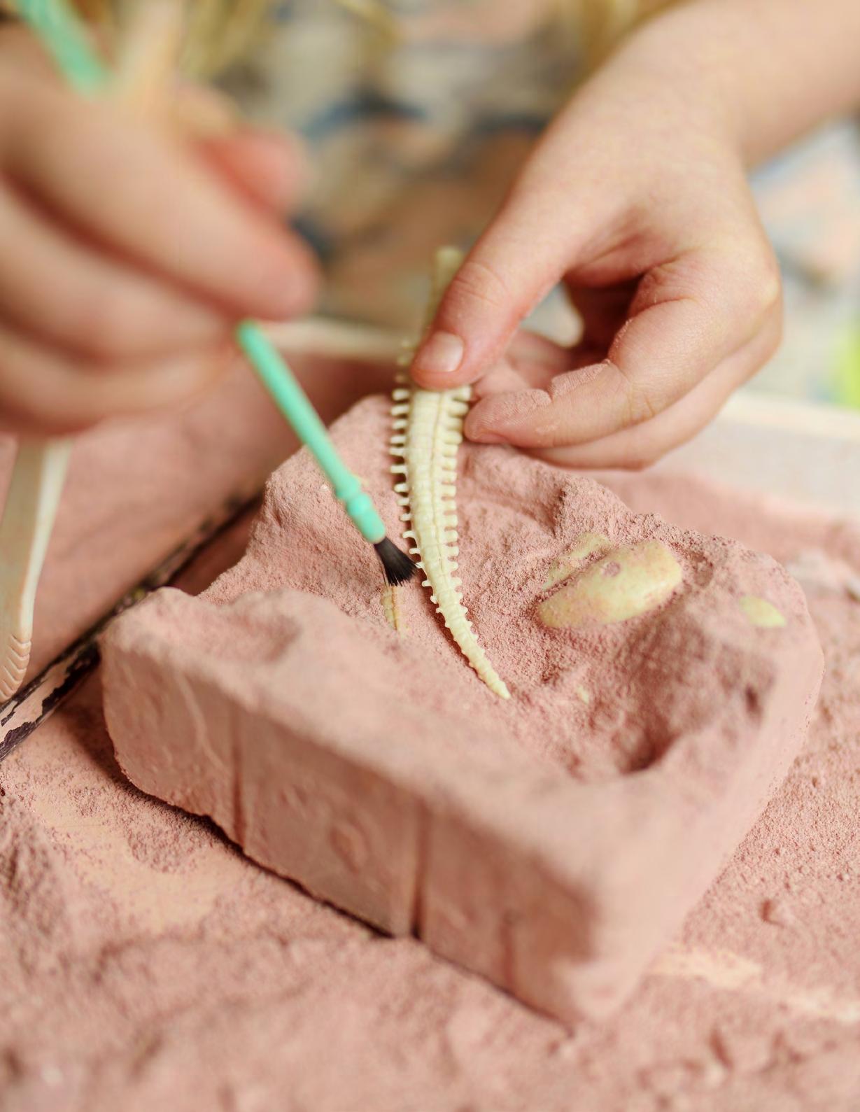 The first step of the fossil hunt is to decide where the fossil might be hiding. Look at your rock to see if there are any bumps or ridges that might indicate a fossil burial.