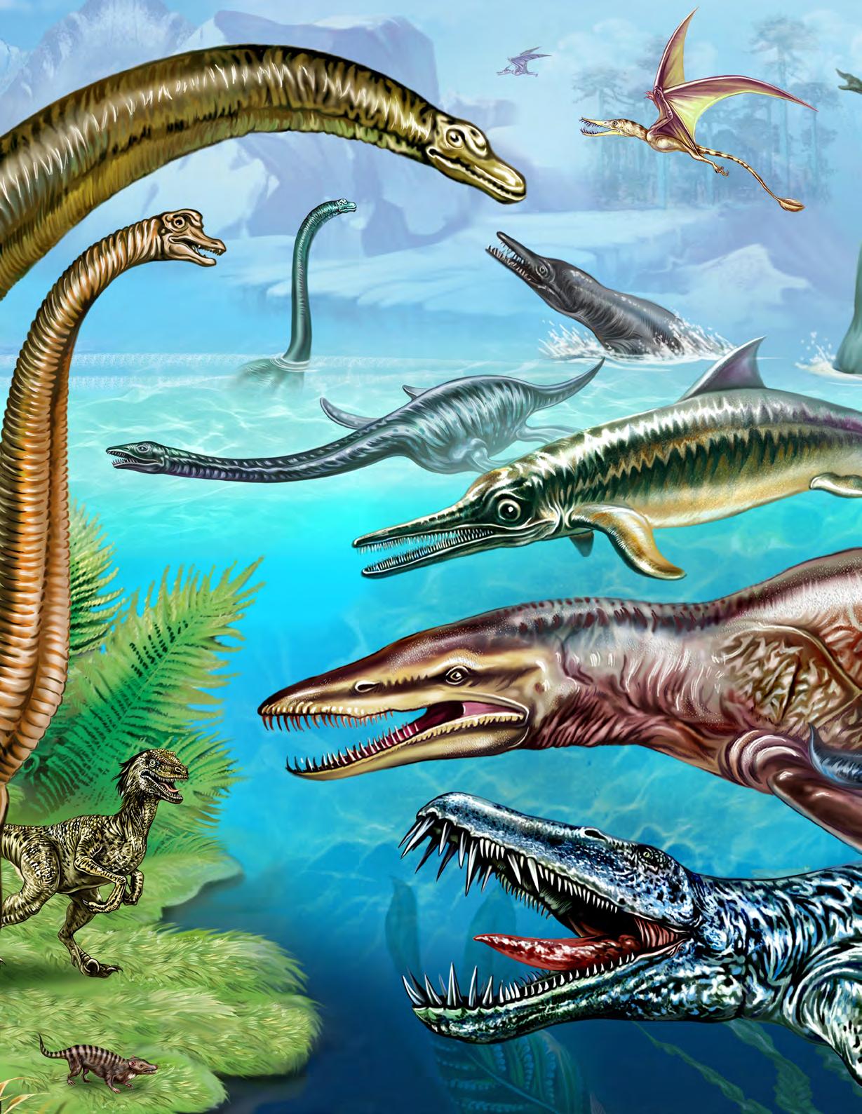 4. It must have lived on land, not in the water like swimming reptiles, or in the air like the pterosaurs. (However, the fossil record indicates that birds evolved from theropod dinosaurs during the Jurassic Period, and consequently birds are now considered a type of dinosaur in modern classification systems.)