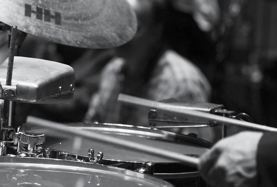 The drums (top left) keep time for the band, creating and maintaining the groove with the bass player. The drummer can also interact with the rest of the band, “talking” to the other musicians by playing accents in response to the music.