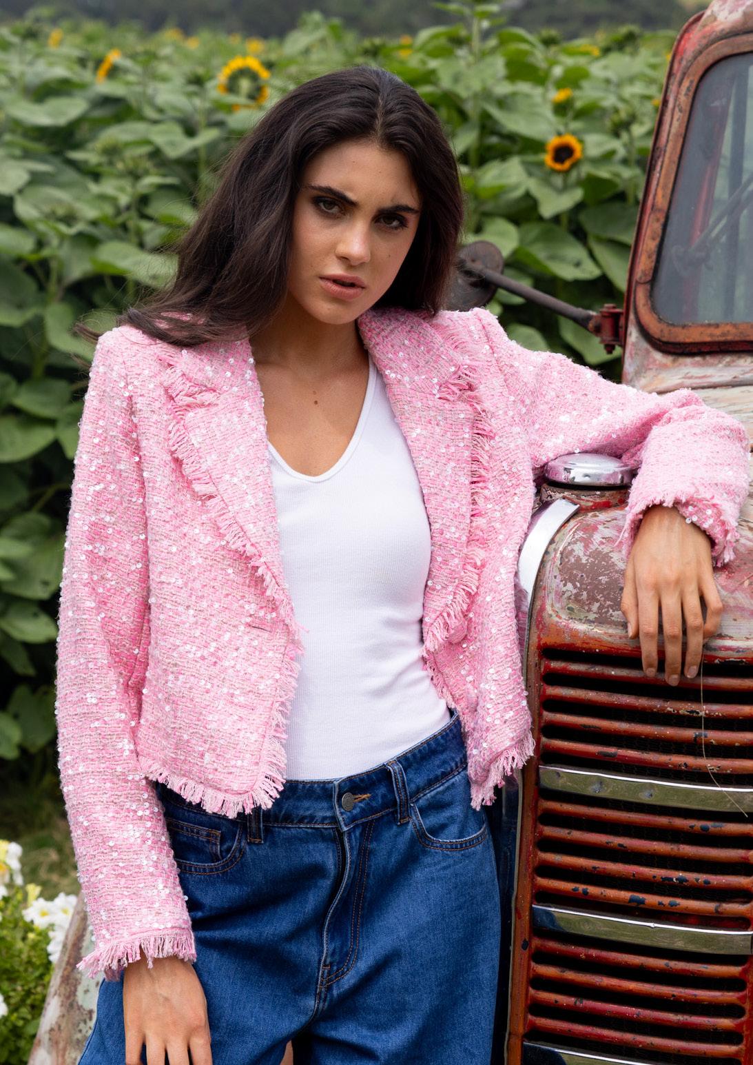 Reece Tweed Jacket Sequin Pink