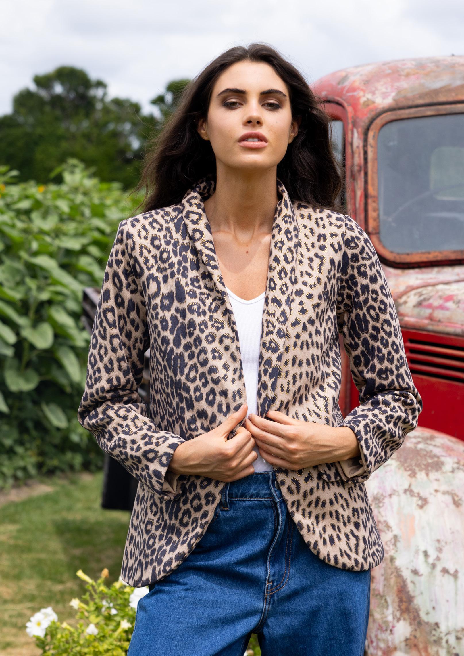 Lucy Blazer Suede Leopard Beige