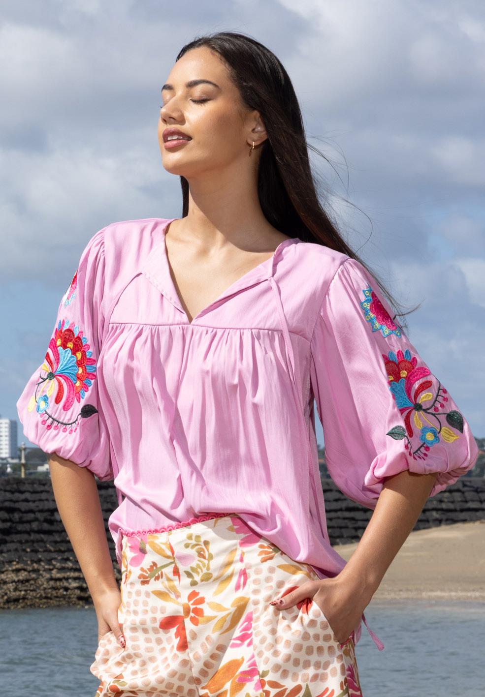 Juju Blouse Embroidered Pink