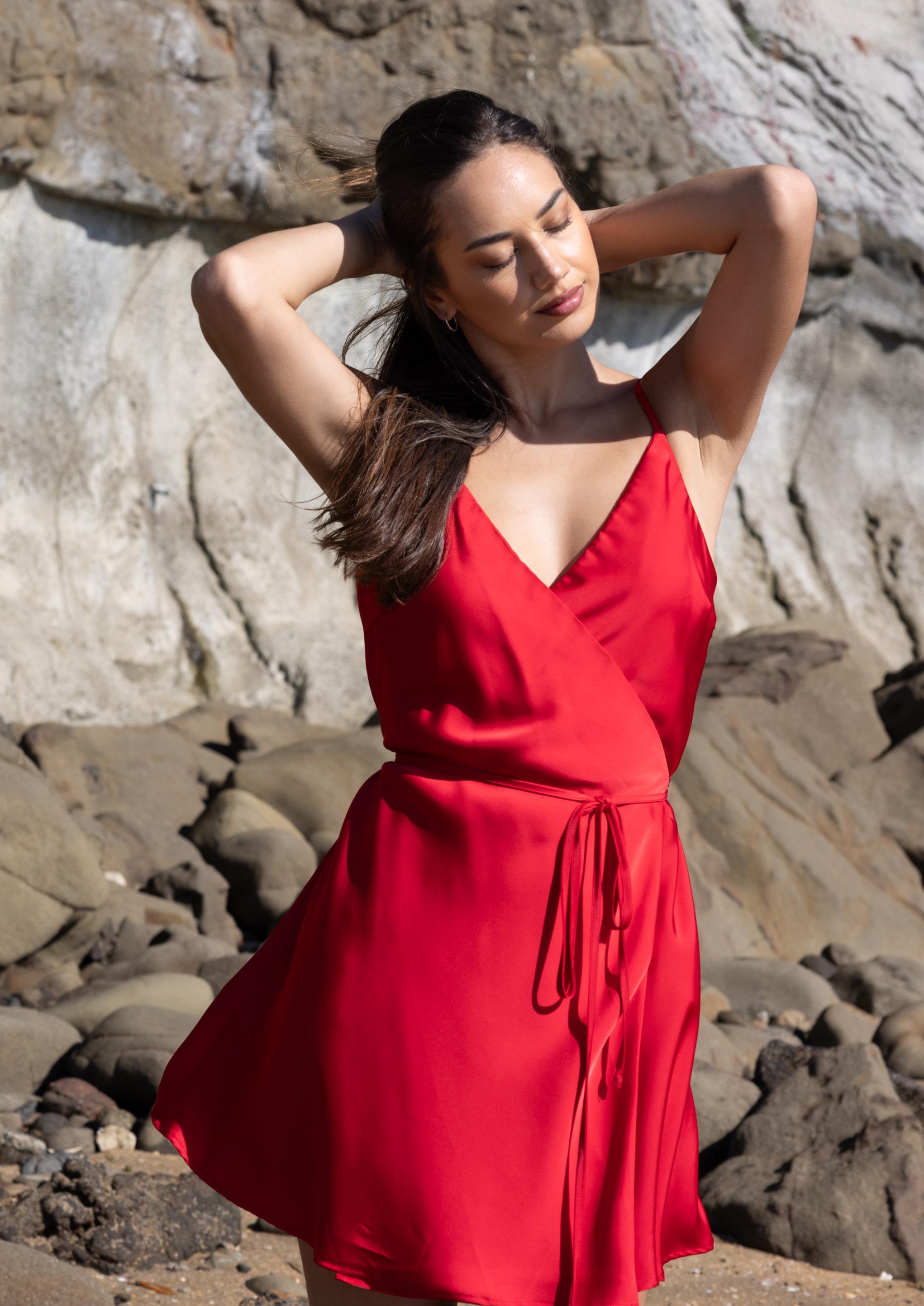 Paloma Satin Wrap Dress Red