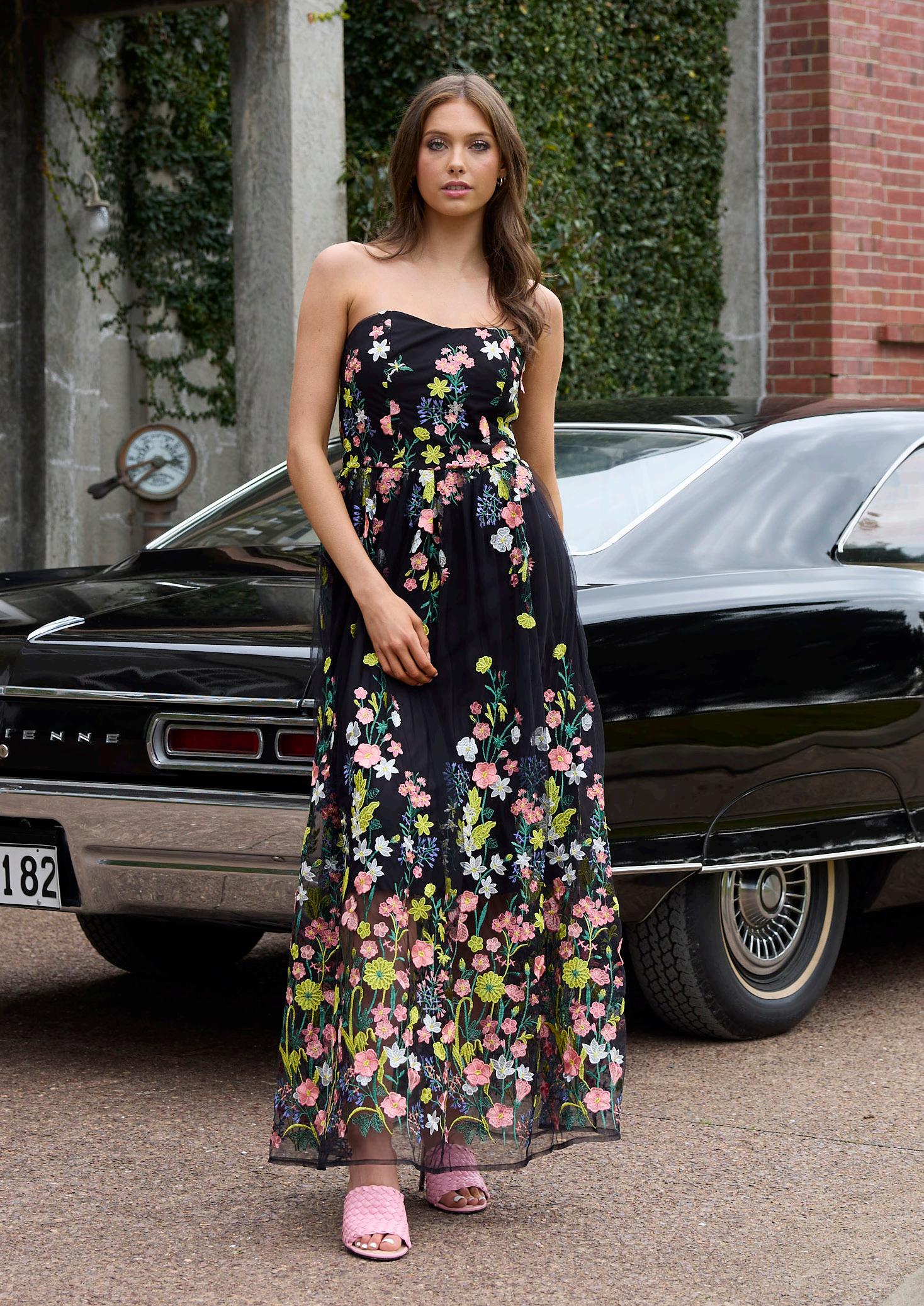 Cammie Strapless Dress Embroidered Lace Black $299.99