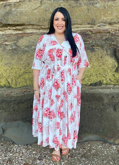 Santana Midi Dress Pink Roses