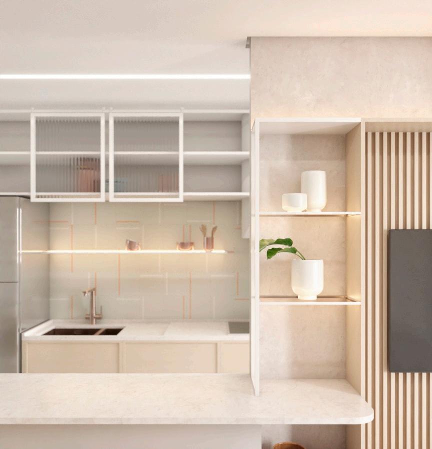 Sobre: Projeto de interiores feito para uma cobertura duplex que será o lar de um casal de médicos e professores universitários em Campinas. O pedido do casal foi um projeto de interiores moderno, minimalista e aconchegante, com uma atenção especial à área gourmet para receber os amigos e ao quarto do pequeno Bento de apenas 1 ano.