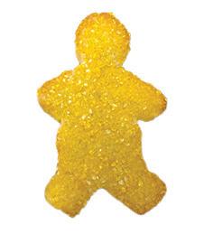 Classic gingerbread man-shaped cookie, decorated with icing and festive sprinkles (colors may vary).