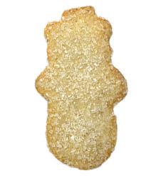 Sugar cookie in the shape of a snowman with compound coating.