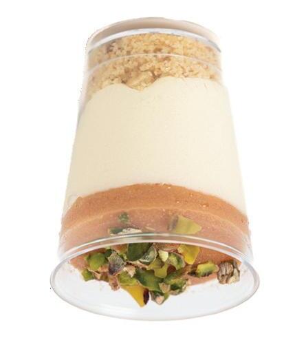 Buttery cookie crumble base topped with a rich lemon cheesecake. Finished with tropical guava purée and chopped pistachios.