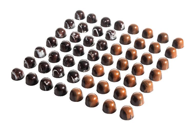 A sumptuous dark chocolate shell, enveloping a creamy pumpkin filling spiced with chai flavors. — Bon Bon —