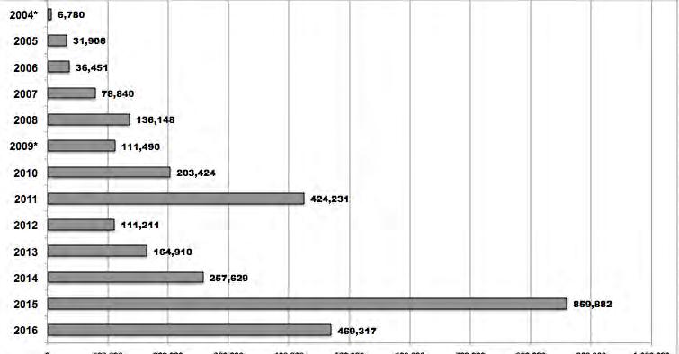 * En 2004 y 2009 sólo se contabilizan 10 meses.