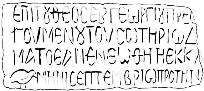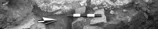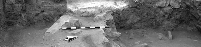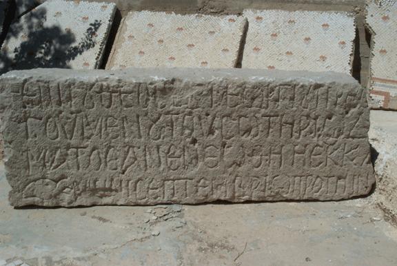 Inscripción en un dintel: Tall Hisbán, campo M, área 5, 2001. Keith Mattingly y Theodore W. Burgh