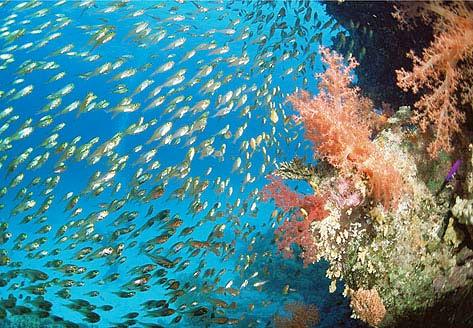 Los pájaros y los peces s e comunica n a través de se ñale s químicas, ll evando a la formación d e gru pos que se muev e n al uní sono, como los b ancos d e pe ce s, que es u n e jempl o maravilloso, de lo mejor que nos ofrec e la naturale za.