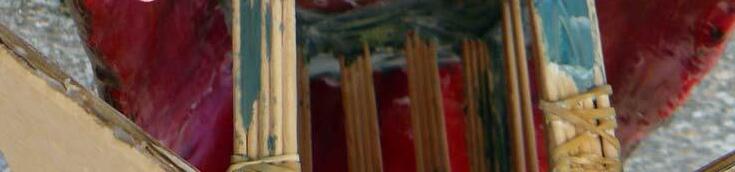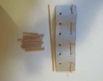 Necesitamos: Arca y bolos elaborados (ver Juego de bolos), tapa de plástico o arandela, caña o palo, cinta adhesiva, hilo de pescar o cuerda fina.