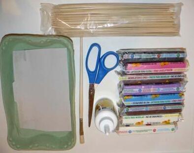 Necesitamos: Plastilina de colores, palillos, cola blanca de carpintero, tijeras, cartón.