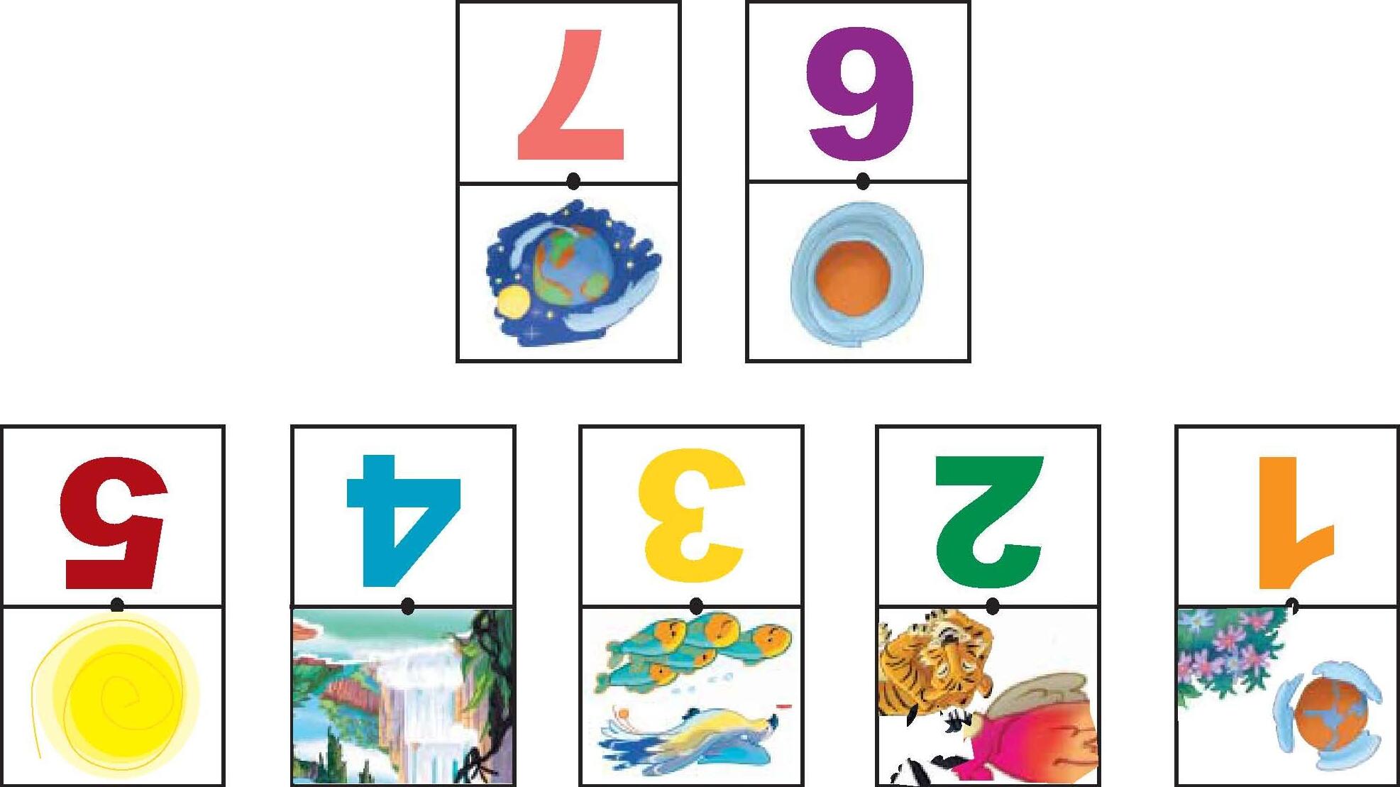 Proponemos: El/la niñ@ puede jugar individualmente o con otros jugadores. 1º Se reparte un número igual de fichas a cada uno de los jugadores. 2º Se tiene que hacer corresponder el dibujo con el número del día que fue creado ese elemento. 3º Finaliza el juego cuando ya no hay opción de poner más fichas.