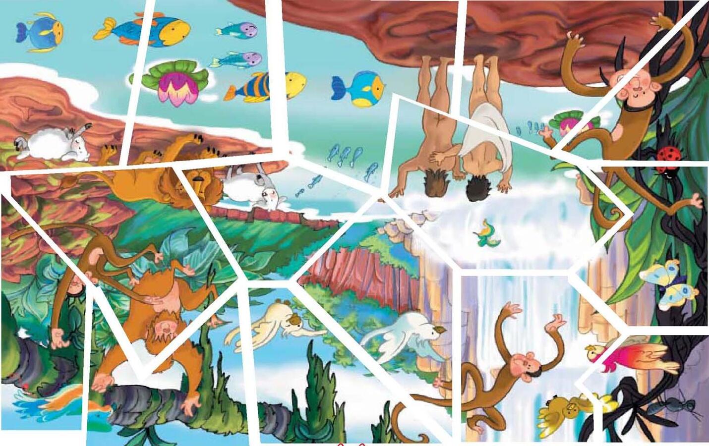 Proponemos: Han de ir uniéndose las partes hasta que la imagen sea idéntica a la que tenemos como modelo. Presentamos está lámina de muestra pero se puede hacer tantas láminas como se desee, imprimiendo las ilustraciones del relato bíblico (ver «Para imprimir tus imágenes»). Es importante que después haber conseguido completar el puzzle se le pida al/la niñ@ que explique el contenido de la imagen.
