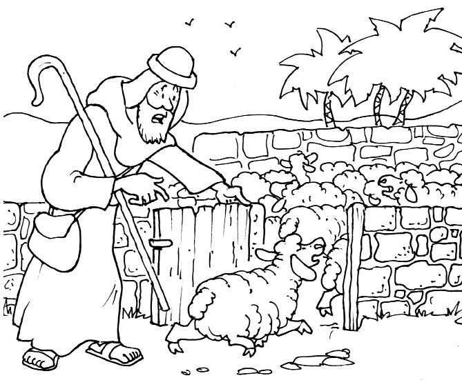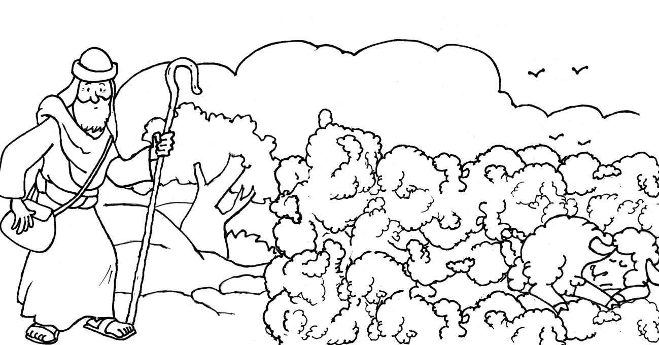Encuentra en el dibujo a Zaqueo, un saco, un cofre y una oveja.