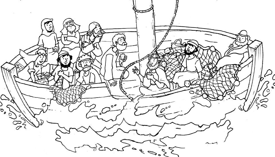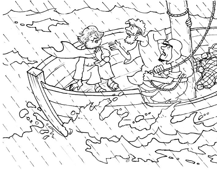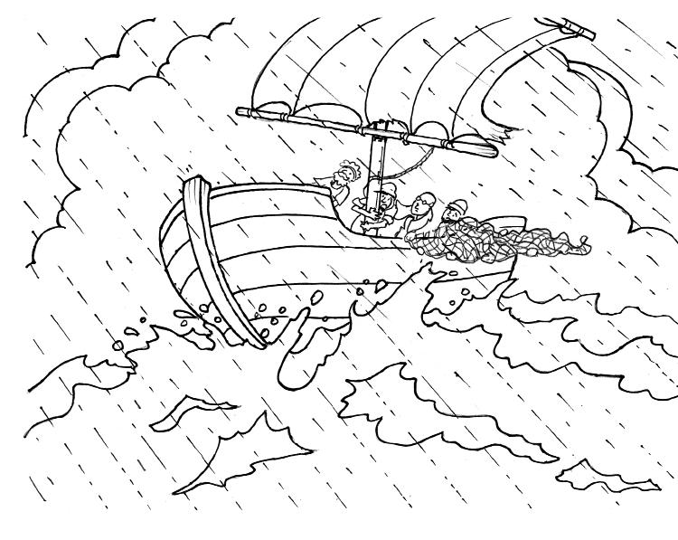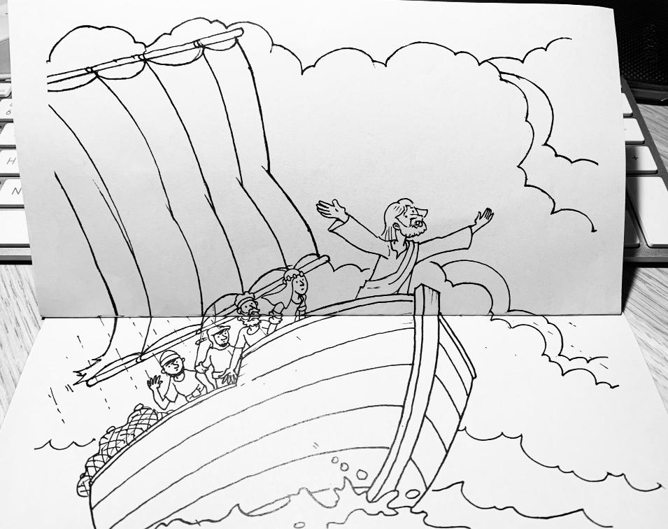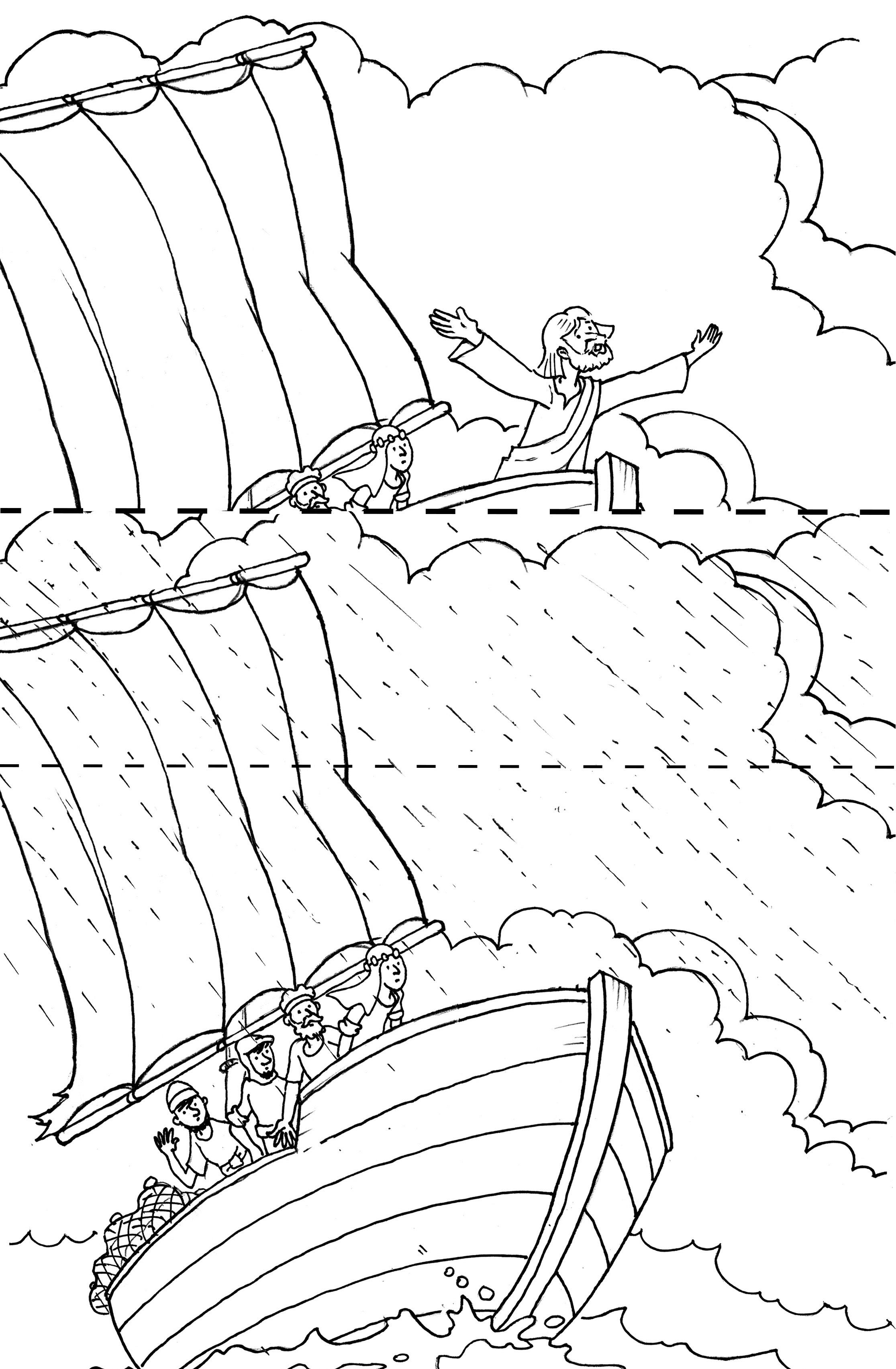 Colorea y dobla por las líneas punteadas de forma que podáis alternar la tormenta sin Jesús y la calma con Jesús.