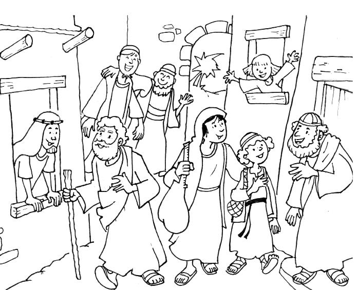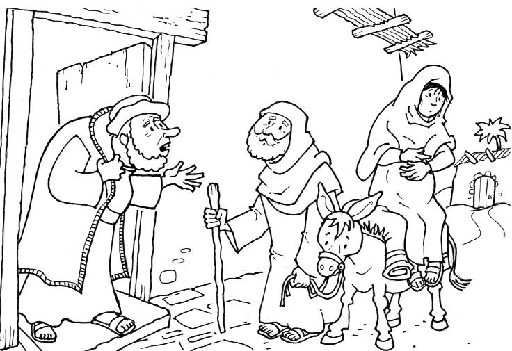 Caminaron un día y otro y otro. Cuando llegaron a Belén era ya de noche. José estaba muy cansado y preocupado porque María estaba a punto de tener al bebé.