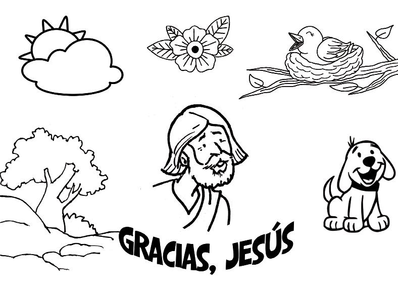 Pega alrededor de Jesús imágenes de las cosas por las que queréis darle las gracias.