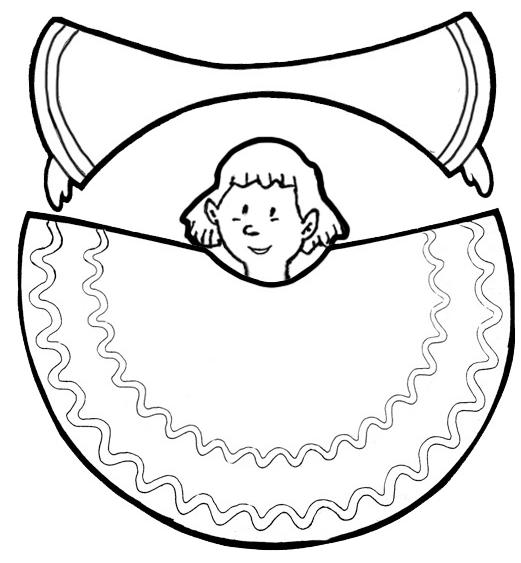 Colorea, recorta por las lineas gruesas y pega para conseguir un ángel como el de la foto.