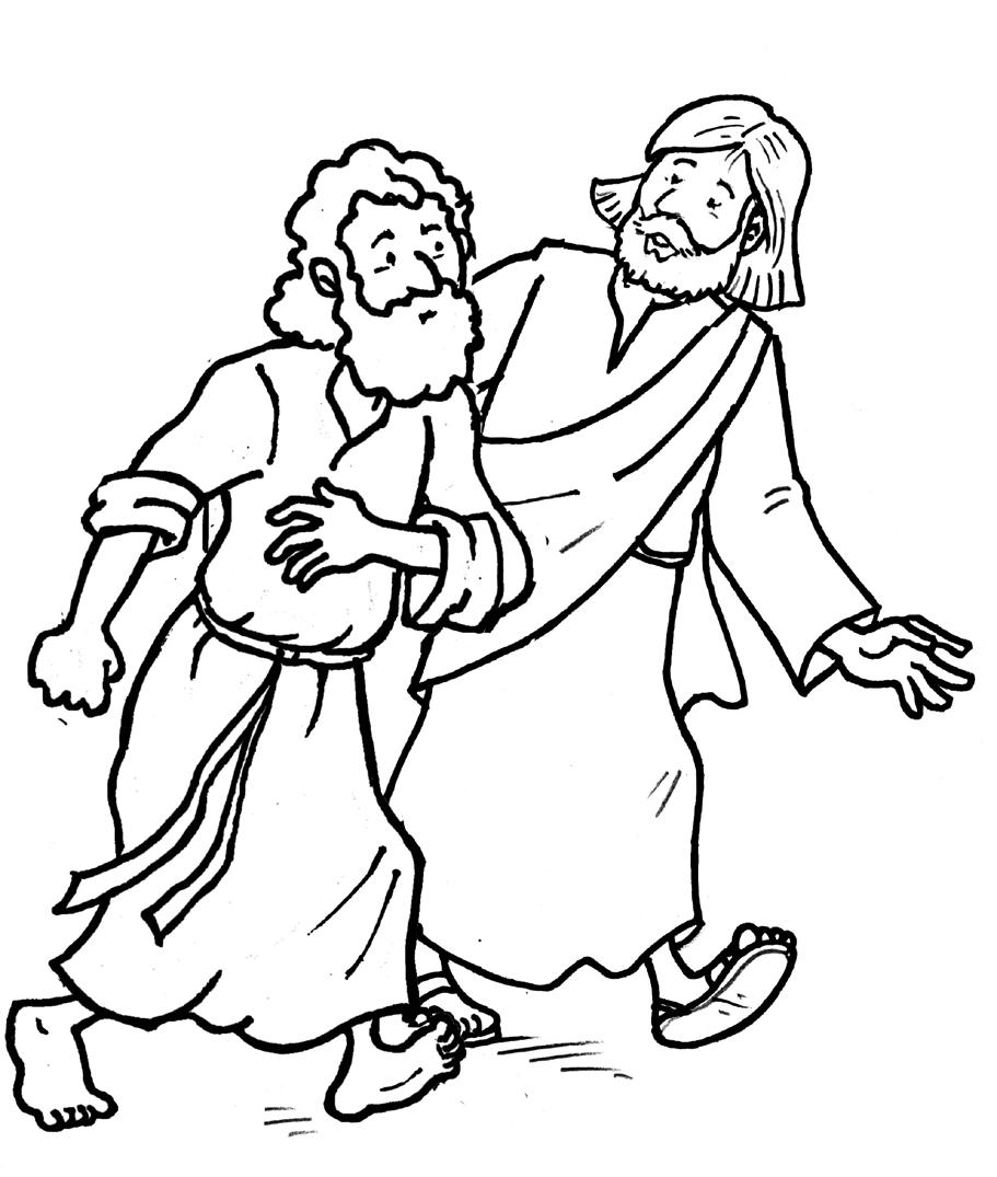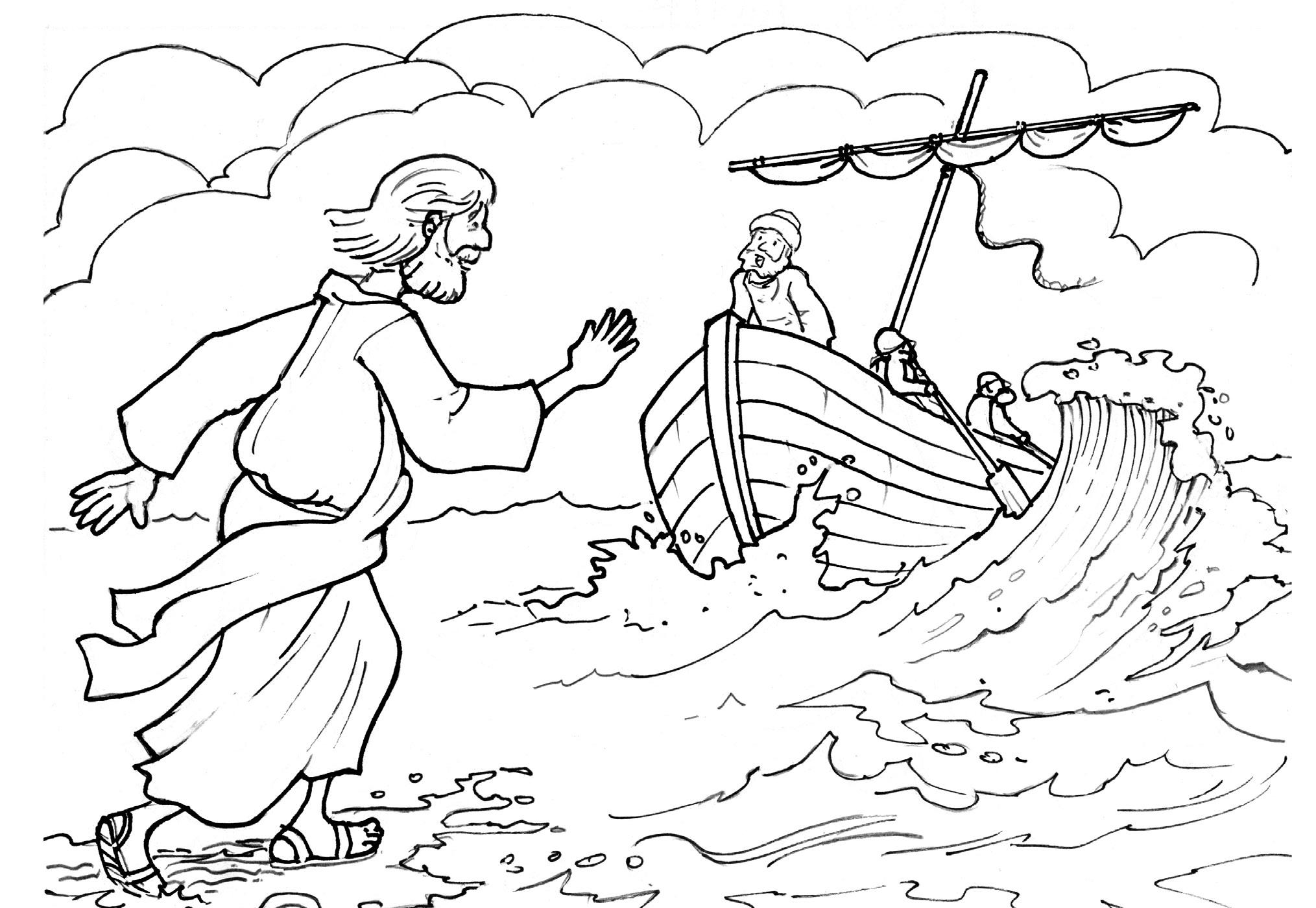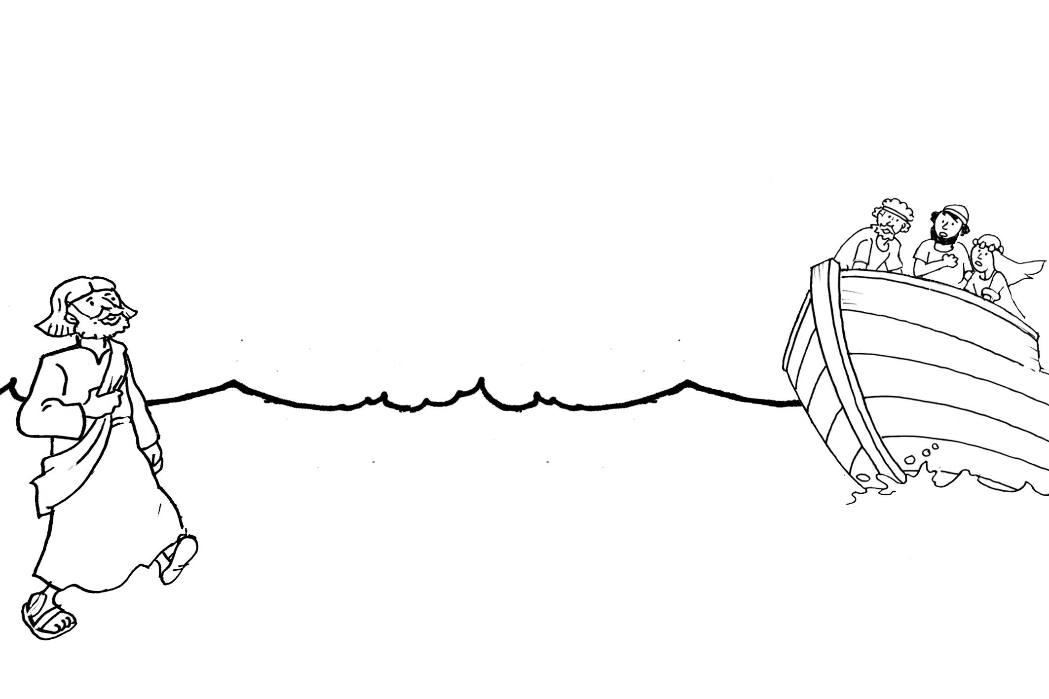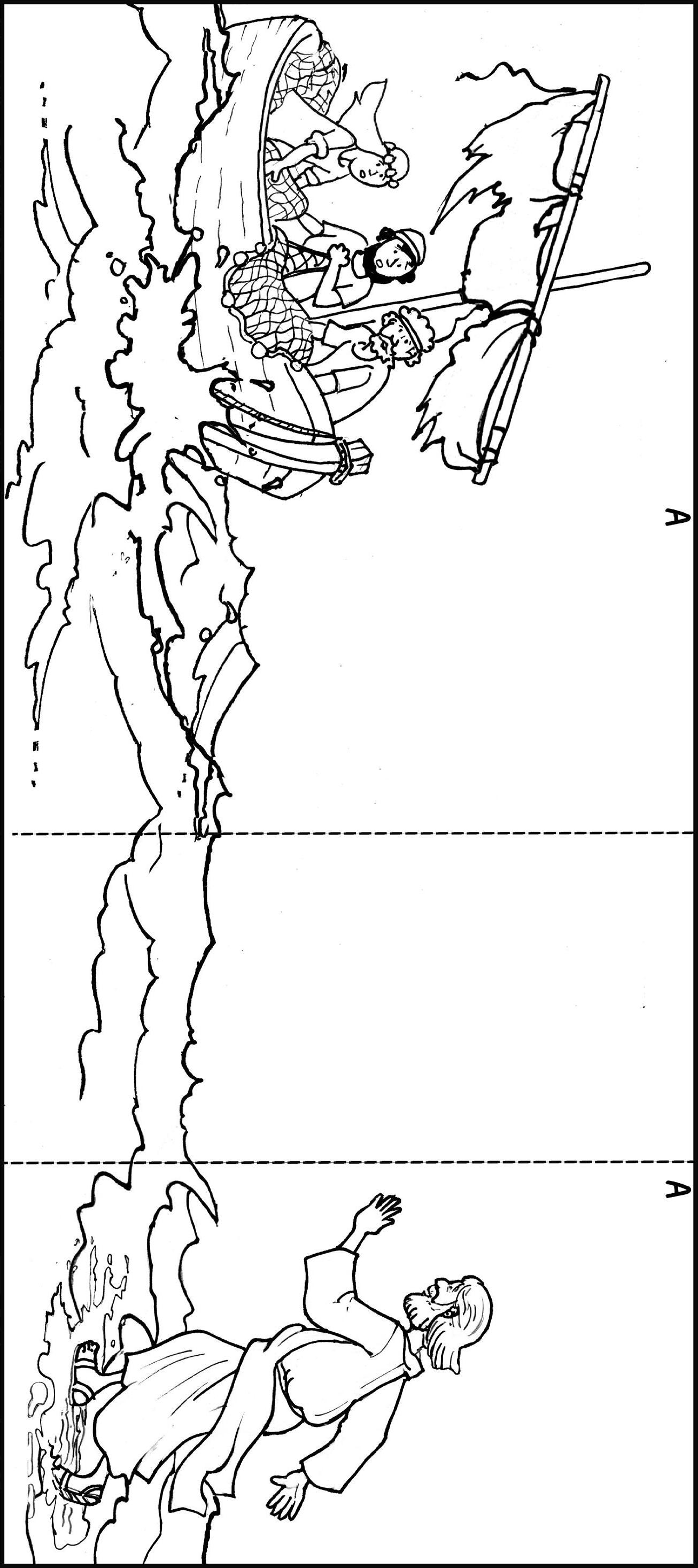 Colorea y recorta por el recuadro exterior. Para acercar a Jesús a la barca, dobla por las líneas de puntos de forma que coincidan las letras A.
