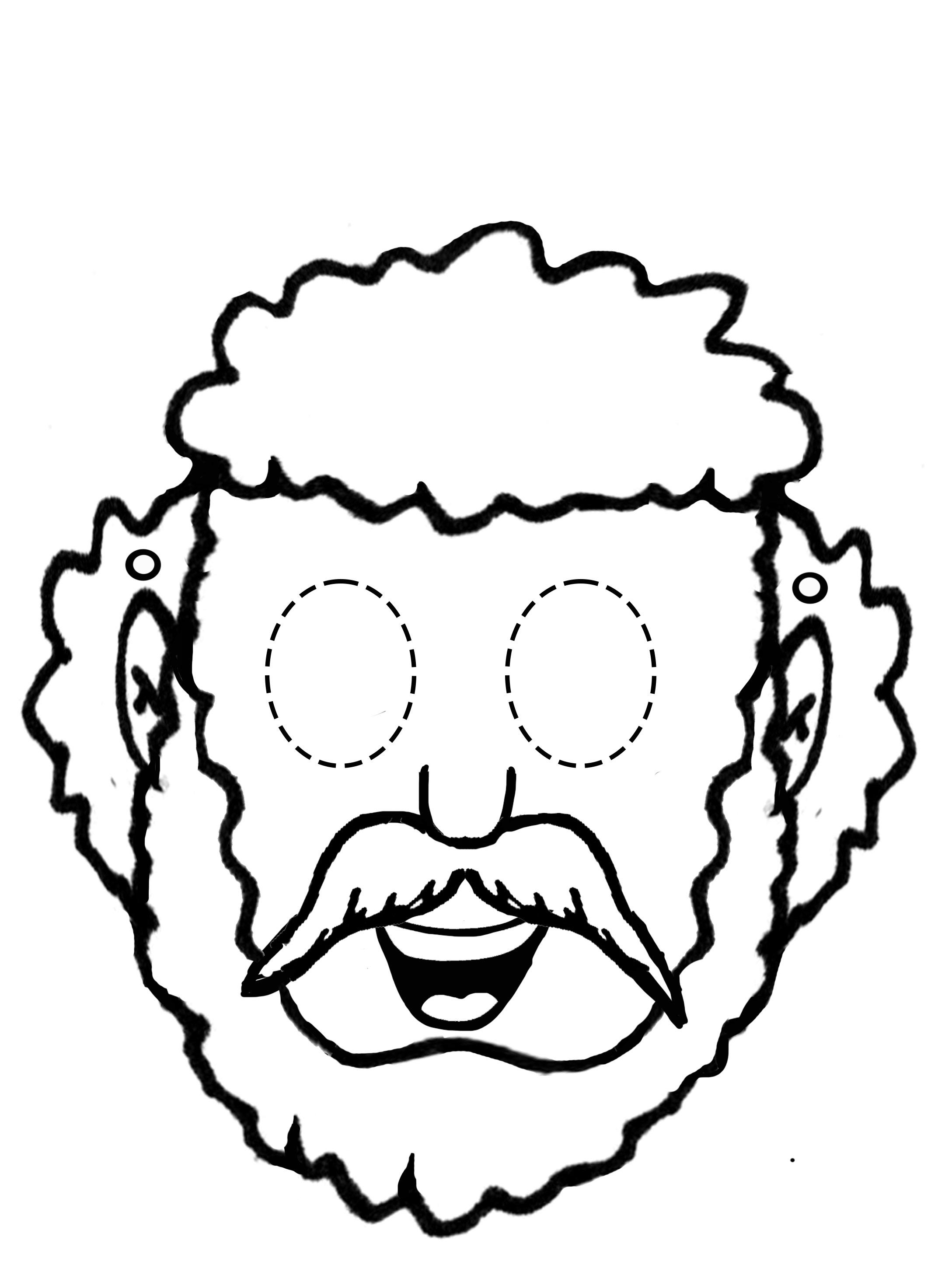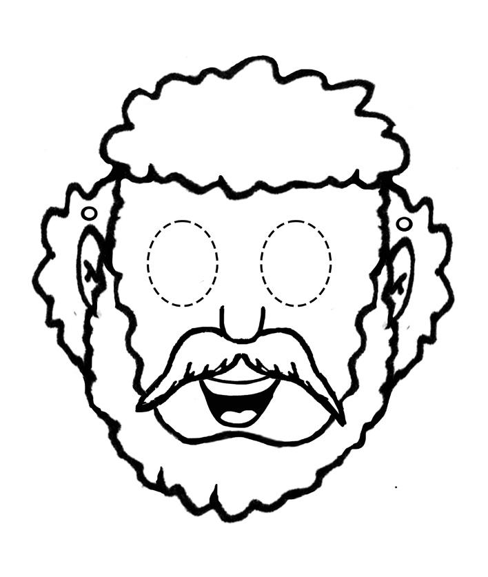 Coloread y recortad la careta de Pablo. Colocad un elástico o un cordel en las marcas laterales para sujetarlo a la cabeza de vuestro hijo.