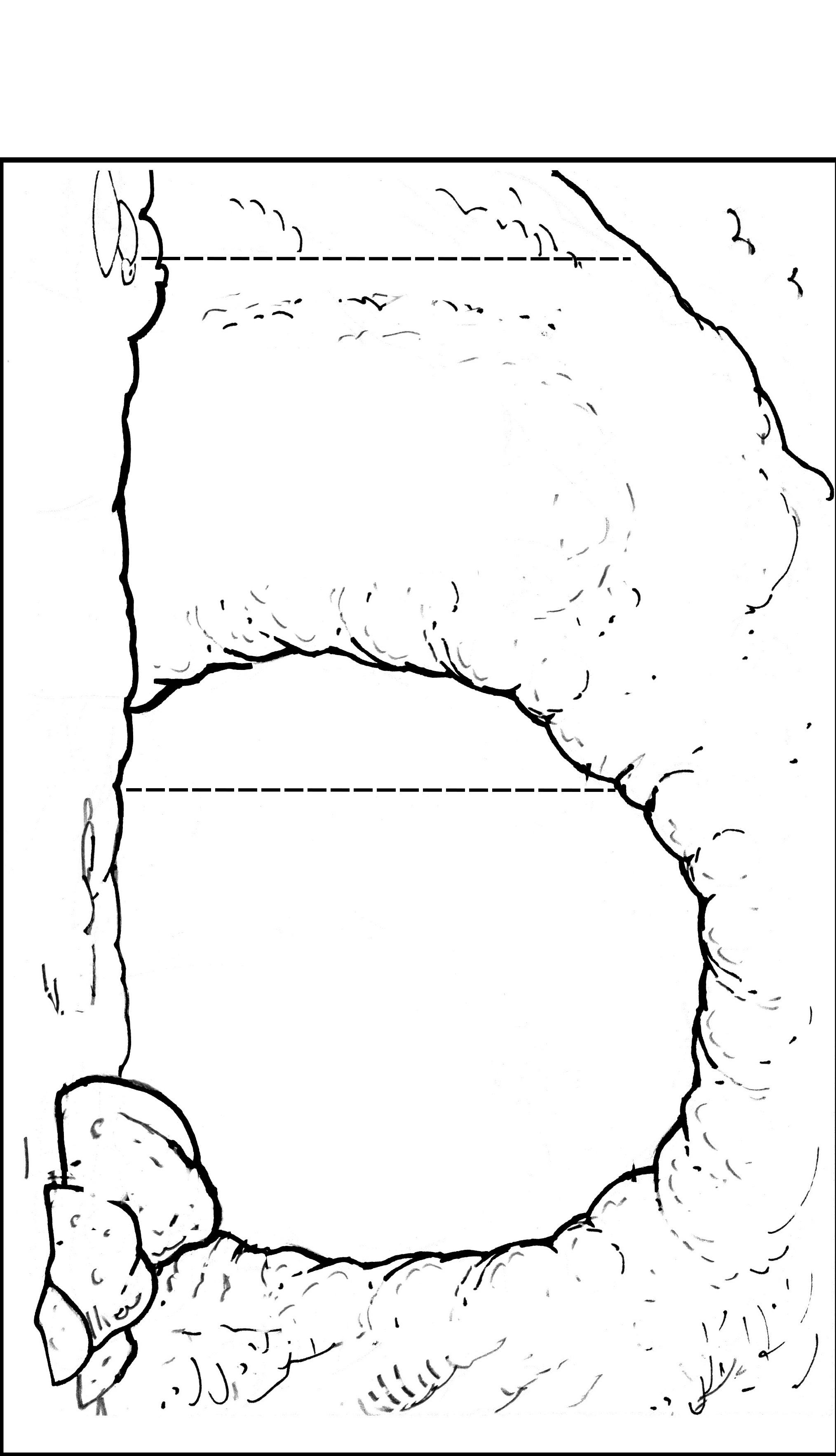 Colorea todas las piezas y recórtalas. Colorea el interior de la cueva de negro. Recorta por las líneas punteadas.
