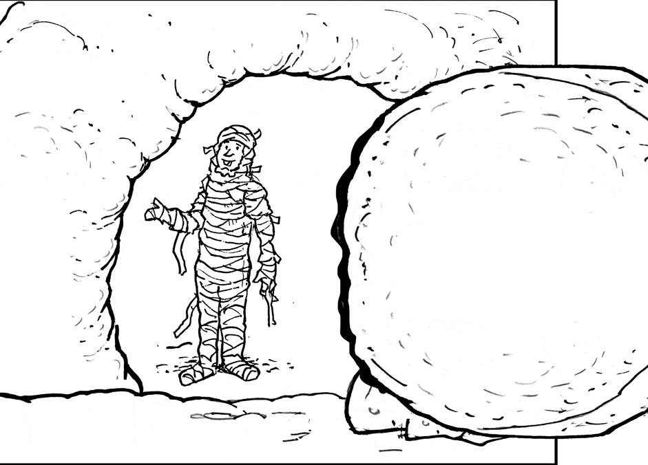 Cuando la piedra esté sobre la cueva podremos levantarla y ver que la tumba está oscura. Cuando tiremos de la piedra hacia la derecha podremos ver cómo sale Lázaro de su tumba.