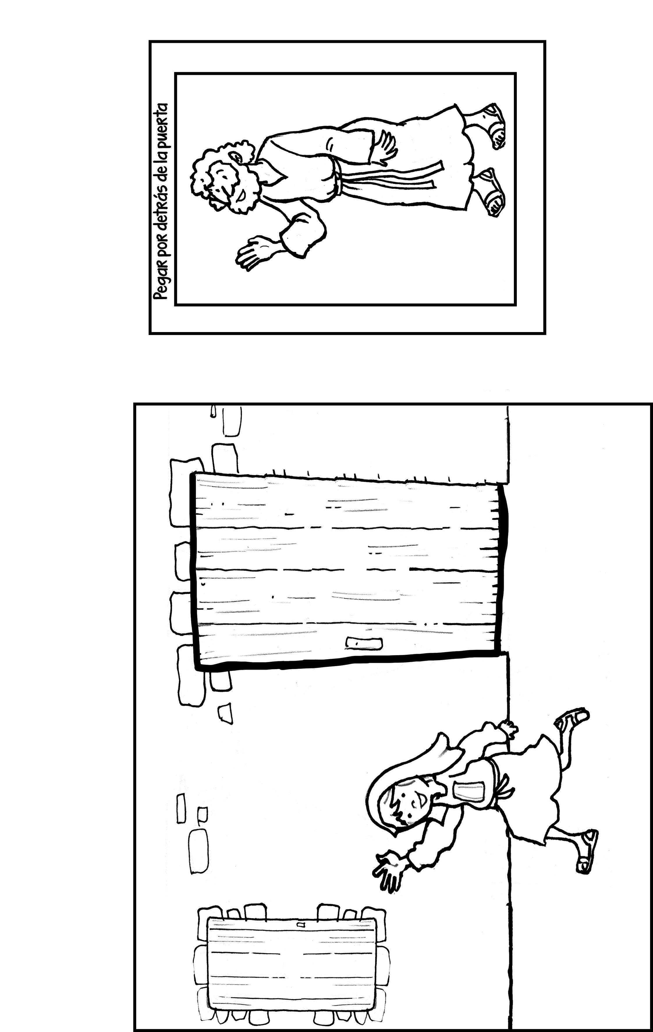 Colorea y recorta los cuadros exteriores. Recorta por la línea gruesa de la puerta de forma que se pueda abrir y cerrar.