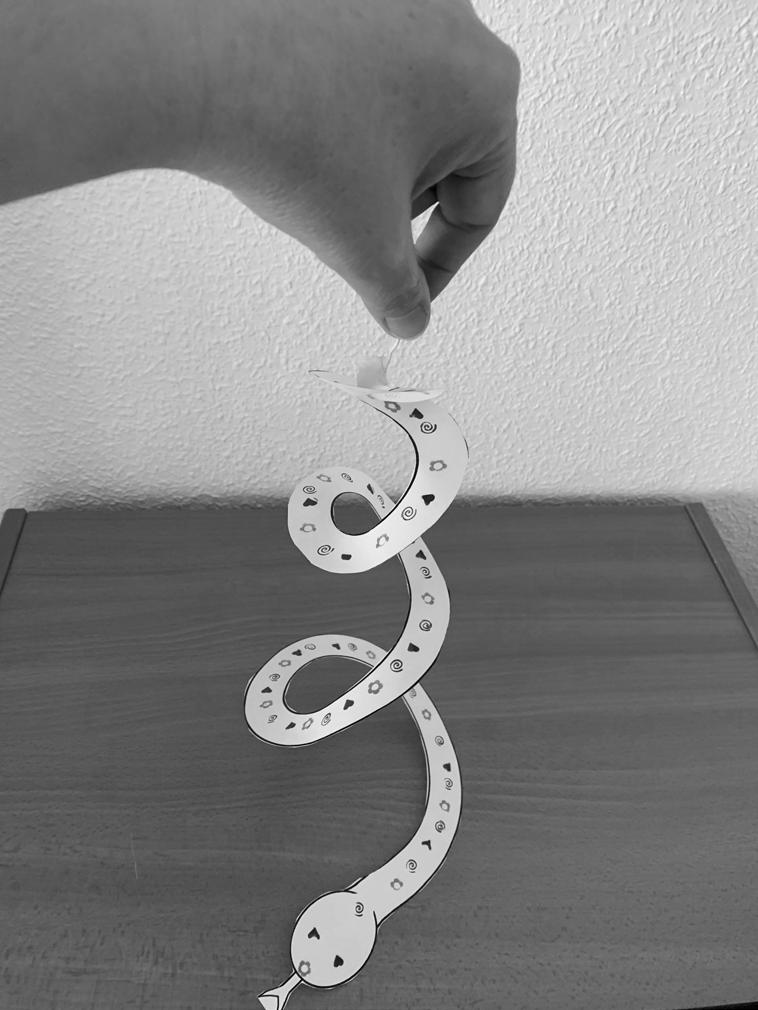Coloread o decorad la serpiente a vuestro gusto y recortad por la línea hasta el centro.