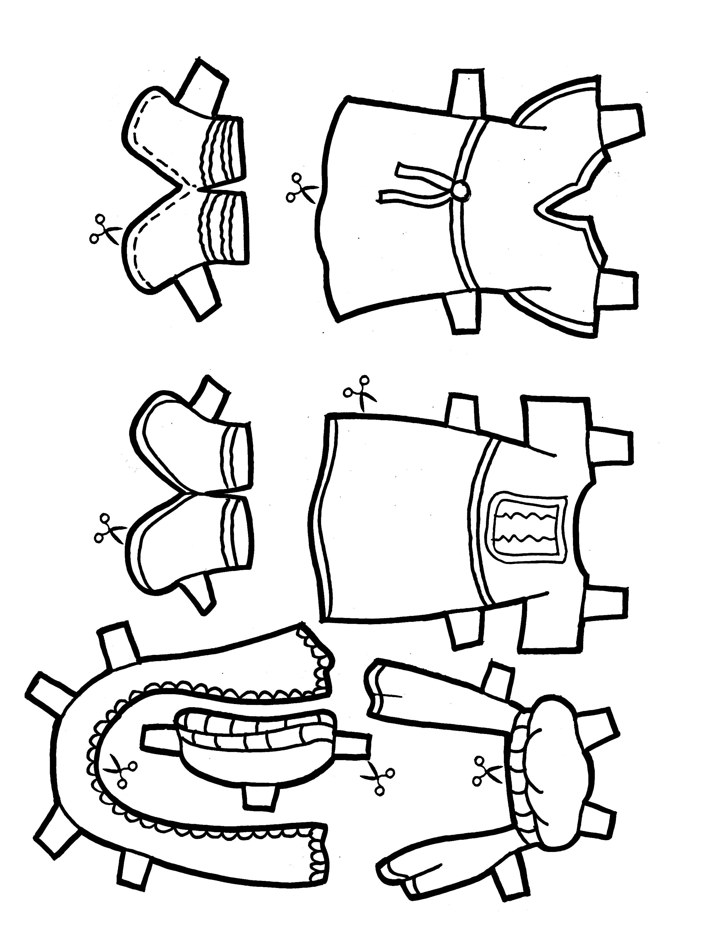 Colorea y recorta por la línea de puntos. Usa palitos de madera, tubos de cartón o lo que tu imaginación disponga para crear títeres con los que contar la historia.